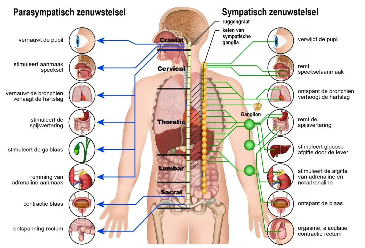 Wanneer het PSZ wordt geactiveerd, schakelt je lichaam over naar een toestand van rust en herstel. Belangrijke veranderingen die plaatsvinden:
